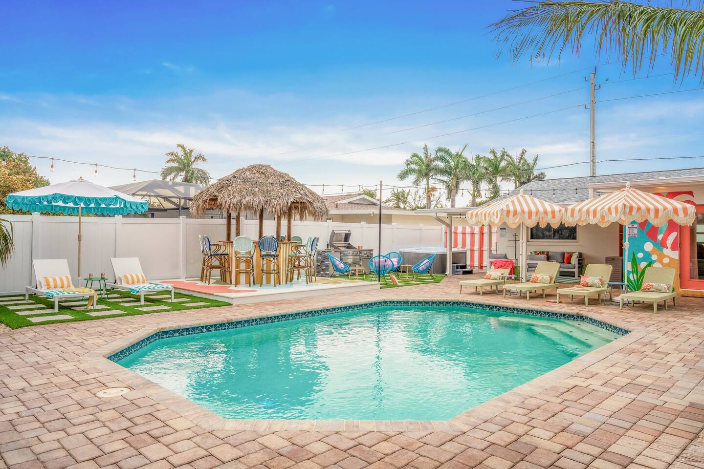 Welcome to Coral Cabana, a boutique 4‑bedroom coastal retreat In Bradenton near Anna Maria Island beaches. Sleeps up to 14 with a heated & cooled pool, hot tub, tiki bar, and lush palm‑lined backyard. Ideal for family vacations, girls’ trips, IMG Academy stays, golf weekends, and celebrations. Enjoy coffee poolside, games under the palms, and relaxing nights in the spa, where unforgettable Florida memories are made.